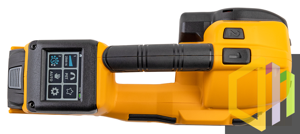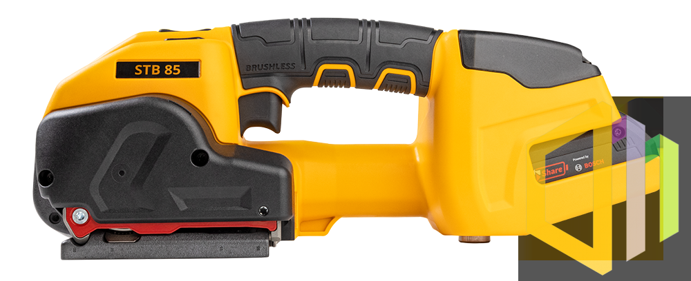 Kolorowy panel pozwala na łatwą zmianę parametrów pracy, a opatentowany systemem zwalniania taśmy za pomocą przycisku spustowego “EASY TRIGGER” w połączeniu ze znakomitym balansem i wyważeniem urządzenia to gwarancja poręczności i ergonomii zarówno w przypadku operacji w pionie, jak i poziomie. Wzorem poprzedniego modelu, spinarka STB 85 oferuje zmienną szybkość naciągania taśmy (0-155 mm/s) i funkcją ulubionego opasywania, które sprawdza się przy pakowaniu różnych rodzajów produktu na jednym stanowisku pracy.