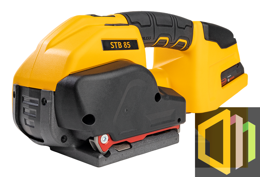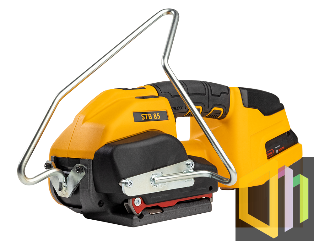Wiązarka STRAPEX STB 85 to najnowsze ręczne, akumulatorowe urządzenie do opasywania szerokimi taśmami 15-16 lub 18-19 mm polipropylenowymi (PP) oraz poliestrowymi (PET) cięższych ładunków.