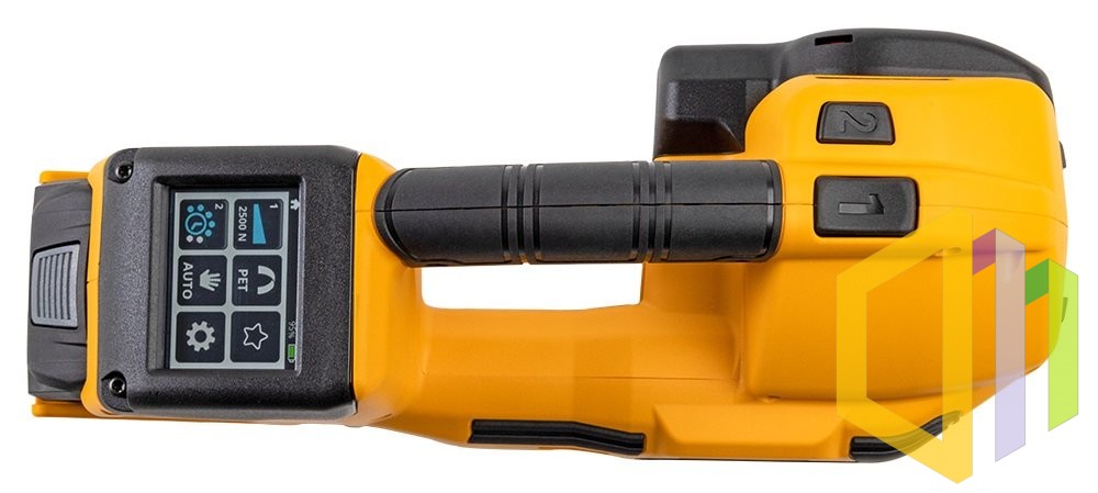 Kolorowy panel pozwala na łatwą zmianę parametrów pracy, a opatentowany systemem zwalniania taśmy za pomocą przycisku spustowego “EASY TRIGGER” w połączeniu ze znakomitym balansem i wyważeniem urządzenia to gwarancja poręczności i ergonomii zarówno w przypadku operacji w pionie, jak i poziomie.